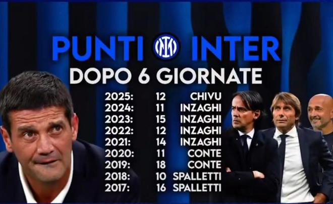 北京时间10月9日,意大利媒体Sport Italia统计指出,西沃在国米执教的前六场意甲比赛中的表现并不如俱乐部前三任主帅斯帕莱蒂、孔蒂和西蒙娜·因扎吉的表现。现年44岁的齐沃今年6月被任命为国际米兰主帅。在带领球队闯入世俱杯16强后,新赛季他还带领球队在联赛中遭遇两连败。幸运的是,最近各项赛事的五连胜减轻了罗马尼亚教练肩上的压力。目前国际米兰以4胜2负排名意甲第4位。据SportItalia统计,齐沃执教国米前六场意甲比赛的表现并不如斯帕莱蒂、孔蒂和西蒙·因扎吉率领蓝黑军团的同期表现。 2017-18赛季,斯帕莱蒂执教国际米兰的第一个赛季,蓝黑军团取得了五场胜利,前六场意甲比赛后取得一场平局。孔蒂执教国际米兰的第一年(2019-20赛季)取得了完美开局,前六场比赛全胜。在因扎吉执教的2021-22赛季,国米直到意甲第六轮的战绩为4胜2平。国际米兰近九个赛季前六场意甲成绩:2025-26赛季,4胜2负,积12分。基伍,2024-25赛季,3胜2平1负,积11分。西蒙·因扎吉,2023-24赛季,5胜1负,15分。西蒙·因扎吉,2022-23赛季,4胜2负,12分。西蒙·因扎吉,2021-22赛季,4胜2平,积14分。 2020-21赛季,因扎吉3胜2平1负积11分。 2019-20赛季,孔蒂取得六场比赛胜利,打进18球。主教练孔蒂在2018-19赛季取得3胜1平2负积10分的成绩。斯帕莱蒂在2017-18赛季取得5胜1平16分的战绩。埃斯帕莱蒂斯
