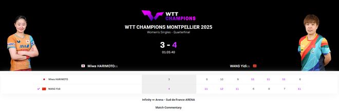 国乒选手王艺迪在2025年WTT蒙彼利埃锦标赛女单四分之一决赛中以4-3击败日本乒乓球选手张本美和。7场比赛成绩:[11-6、12-10、11-9、6-11、8-11、7-11、11-6]。也就是说,17岁的张本以0-3的大比分将比赛带入决胜阶段,并险些以3-4完胜。本场比赛是王艺迪与张本智和的第二次交手,2024年总决赛首次交锋。王艺迪一度以3-0领先,但比赛进入抢七。赛后,王艺迪这样评价本场比赛:首先,我觉得今天是一场非常紧张、紧张的比赛。我认为今天总体心态比较好。自2024年总决赛以来我们就没有交手过,所以我认为我们今天在心理上处理得很好。本次比赛,张本梅川在四分之一决赛中被淘汰,但他发挥得很好,所以没有哭。领先0w的情况下也能连胜三场在这个乒乓球世界里,一胜三负并不容易。对于一个17岁的女孩来说,她确实很了不起。在王艺迪攻入决定性进球后,张本美和可能会有些恼火。他低下头,表情有一瞬间失控。然后直接朝王一荻走去。她微笑着与大迪握手,祝贺他晋级半决赛。张本梅和选手们都开始成长。他的哭声越来越少,而且似乎越来越有力量。在伦敦站,梅川张本被宣布为冠军。在蒙彼利埃车站,他依然泰然自若。他输给了世界排名第五的王艺迪。梅川张本的表现非常冷静。她在伦敦站作为第一种子选手并获胜。日本媒体《东京体育新闻》也盛赞了17岁的张本梅,她在0-3落后的情况下险些完成令人惊讶的翻盘。张本梅和张在最近两场比赛中击败了王艺迪。梅哈里moto和选手们已经有足够的技术了。